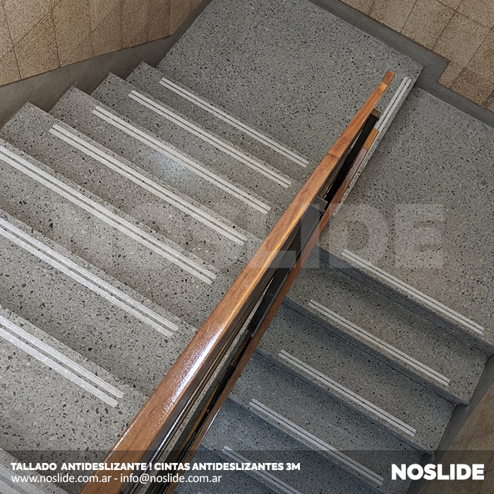 El Tallado Antideslizante Permanente NOSLIDE reduce el riesgo a caídas por resbalones en escaleras, rampas y pisos de superficies lisas como mármol, granito, porcelanato, baldosas, cemento, piedra u otros materiales.